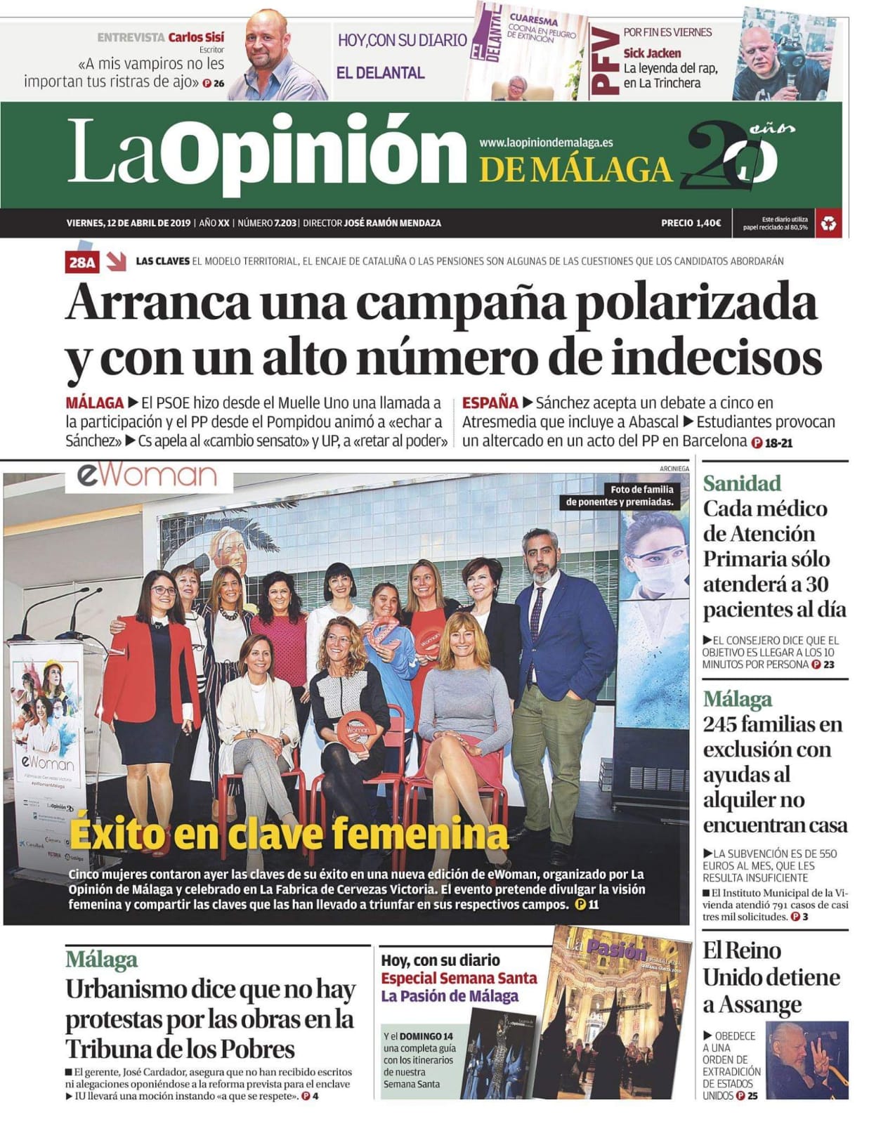 Artículo de Yo Soy Mujer con motivo de eWoman Málaga (12/04/2019) Participación en eWoman 2019 (11/04/2019) Entrevista en La Opinión de Málaga (31/03/2019) Los estudiantes malagueños son de «letras» (31/03/2019) Málaga City Hub 2018 (19/12/2018) Compártelo: Haz clic para compartir en X (Se abre en una ventana nueva) X Haz clic para compartir en Facebook (Se abre en una ventana nueva) Facebook Me gusta Cargando...